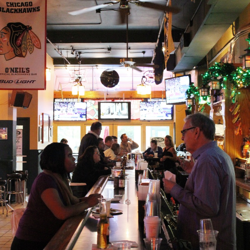 O'Neil's on Wells is a great bar in the south loop next to the Chicago Board of Trade. The drinks are excellent, and the staff is very friendly. It's a great place to go for happy hour with a large group...