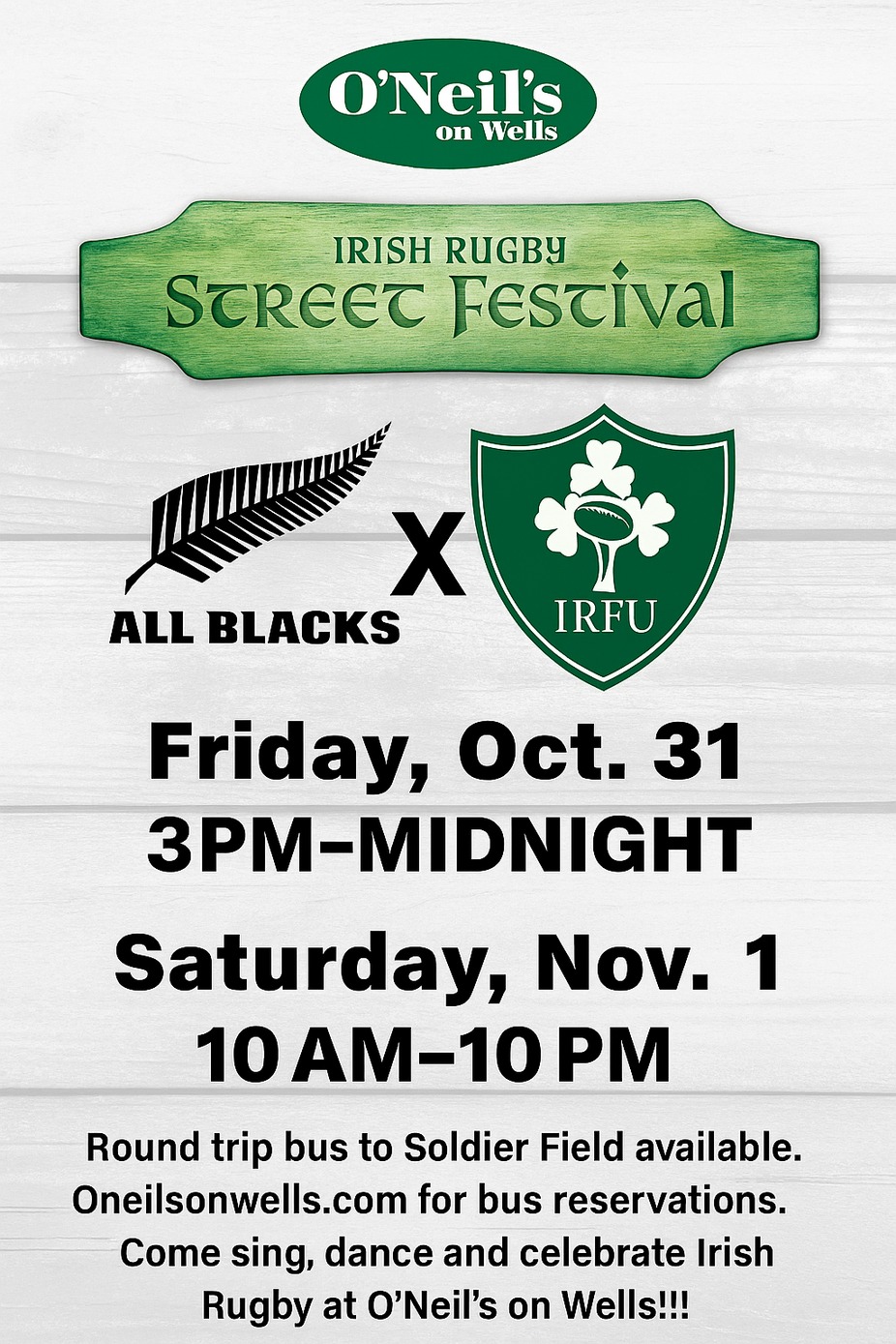 The Shannon Rovers Bagpipers will be on the bar at 2:30pm and 5:30pm!