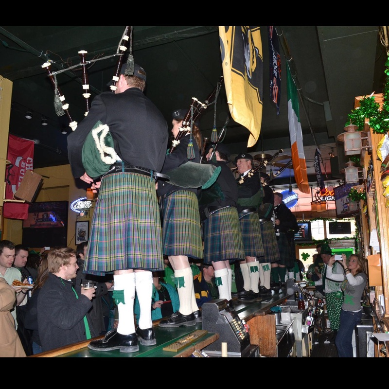 Went to O'Neil's on Wells after my girlfriend and I watched the dying of the Chicago River. My girl friend and I über over there. Rumor had it that O'neils was going to have Irish bagpipers performing on top of the bar at 2pm...